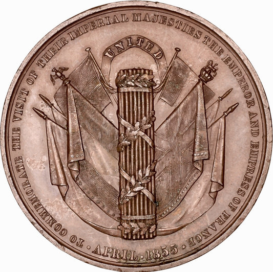 1855 Napoleon III and Empress Eugenie, Visit to England 42mm bronze medal BHM 2564