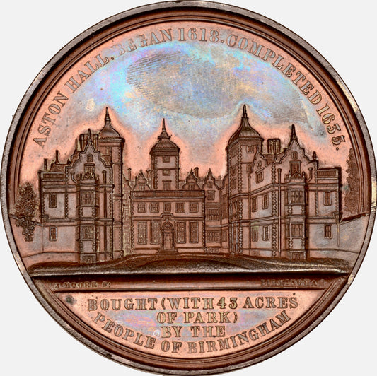 1858 Victoria visit to Aston Hall, Birmingham 55mm bronze medal in fitted box by J Moore BHM 2613