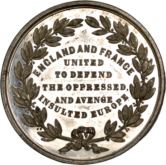 1854 Anglo-French Alliance 44mm white metal medal by Allen & Moore BHM 2536 Eimer 1489