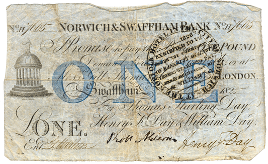 Norwich & Swaffham Bank 1825 £1 banknote Outing 1609i