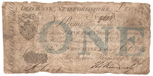 Old Bank, Staffordshire 1844 £5 banknote Outing 1525d