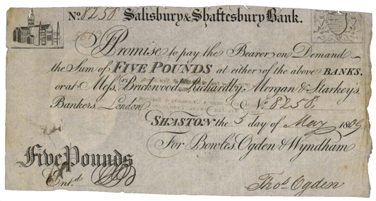 Salisbury & Shaftsbury Bank 1817 £5 banknote Outing 1922b