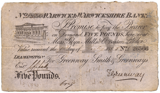 Warwick & Warwickshire Bank 1885 £5 banknote Outing 2279e