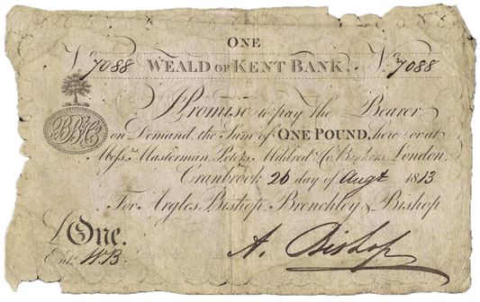 Weald of Kent Bank 1813 £1 banknote Outing 608a