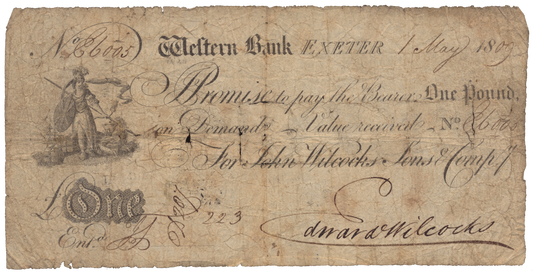 Western Bank Exeter 1809 £1 banknote Outing 759b