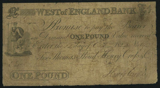 West of England Bank 1822 £1 banknote Outing 766b