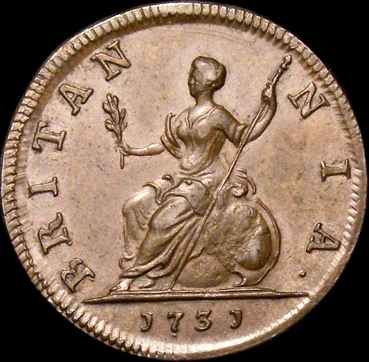 1736 Farthing S3720 BMC 864 Date low in exergue GEF CGS65