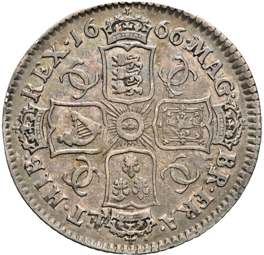 1666/4 Halfcrown Third bust Edge XVIII Elephant below S3364 ESC 447 Extremely rare (R3) F