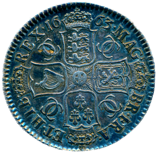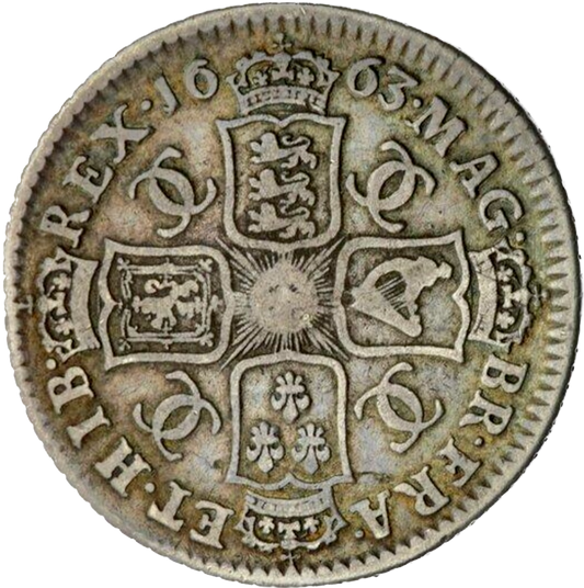 1663 Shilling First bust Transposed shields S3371 ESC 504 Extremely rare (R3) F/GF