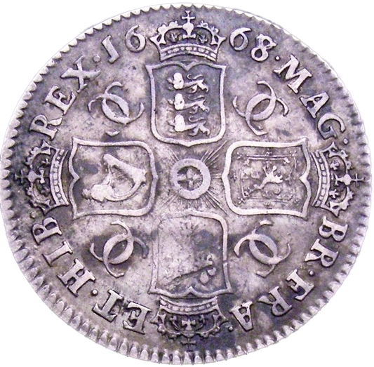 1668/7 Shilling Second bust S3375 ESC 513 Very rare (R2) AVF