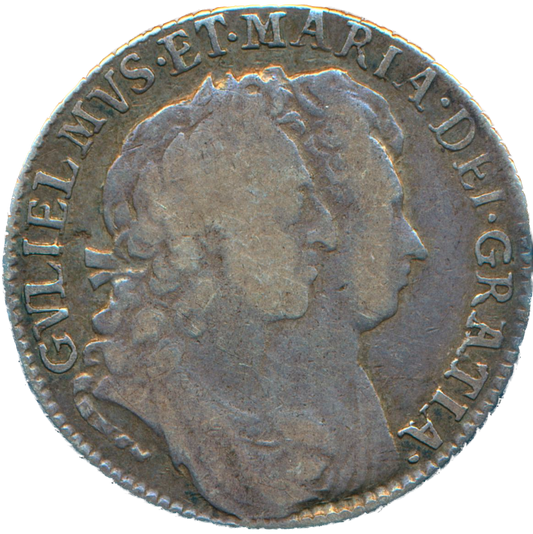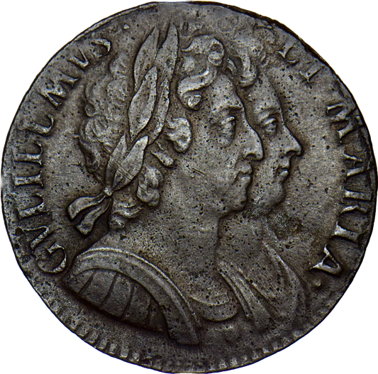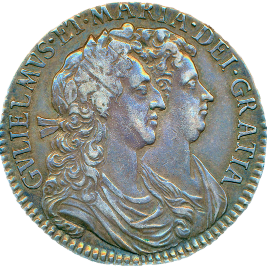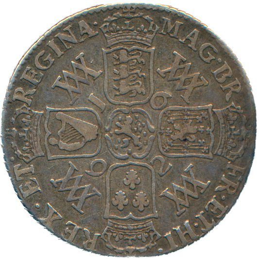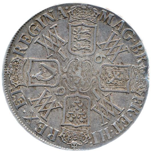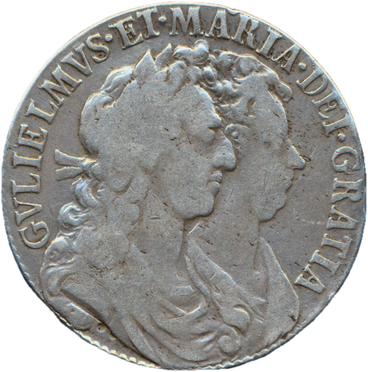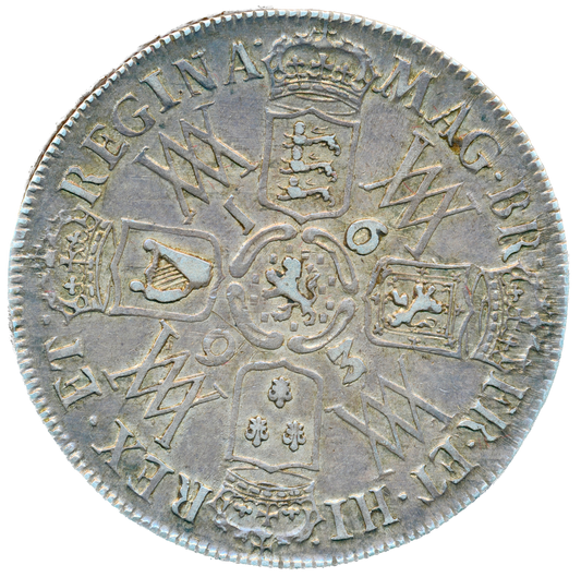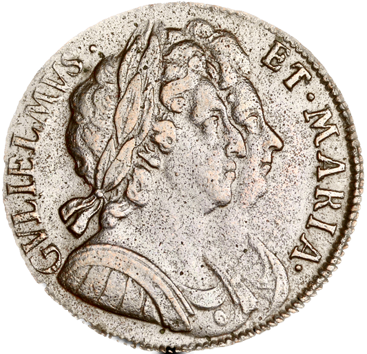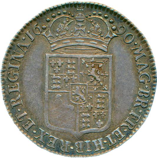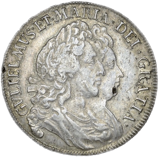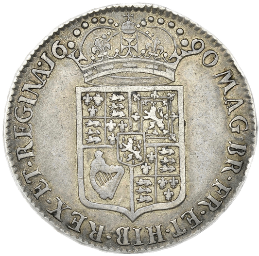 1690 Halfcrown First busts Edge SECVNDO S3435 ESC 848 GRETIA error with V over S in GVLIELMVS Extremely rare (R3) VF