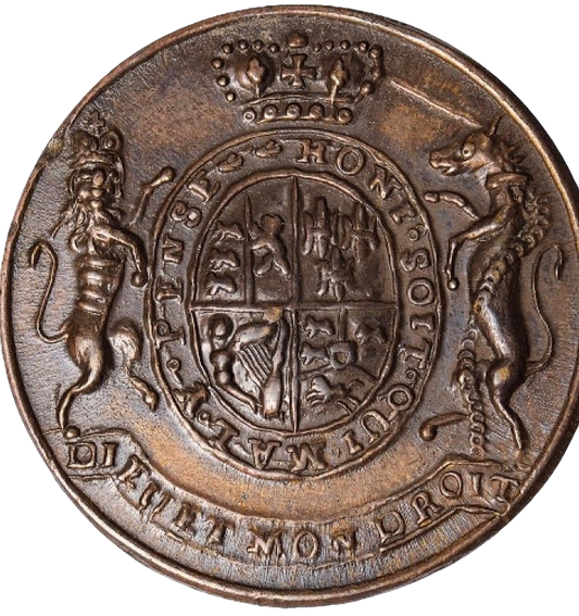 1714 Coronation 132mm bronzed electrotype copy medal by Seelander MI426/15 UNC