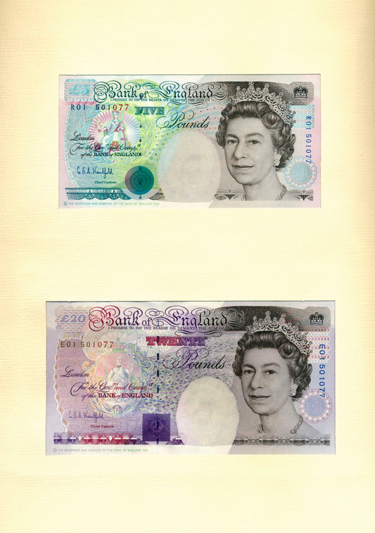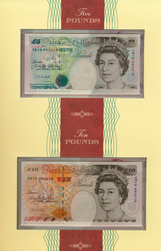 C103 1991 Debden presentation set Matched serials Gill £5 B353 (SE68) £20 B355 (20U)