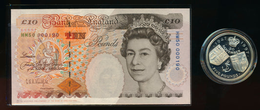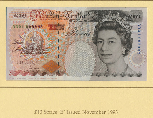 C104 1992 Debden presentation set Kenfield Last D series £10 B360 (KR30) First E series £10 B366 (A01)