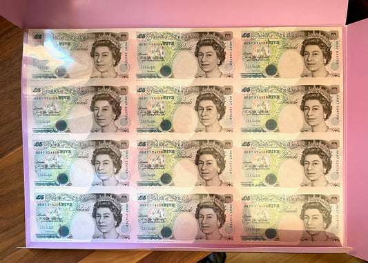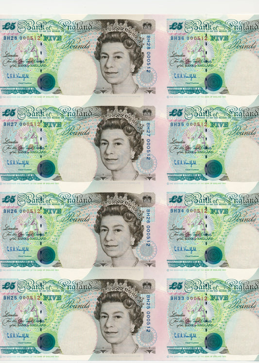 C121 1996 Debden presentation set Uncut mainsheet of 8 £5 notes B364 (BH)