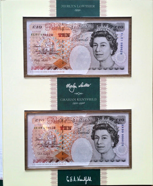 C143 1999 Debden presentation set First Lowther £10 (B382) and Last Kentfield £10 (B369)