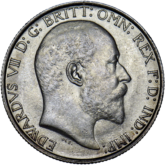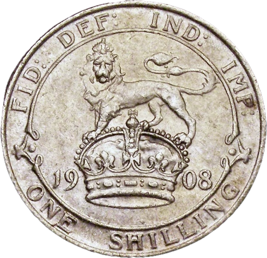 1908 Shilling S3982 ESC 3594 Unusual die Scarce EF