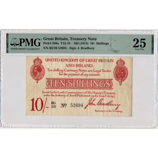 ENGLAND P.348a T12.3 1915 HM Treasury Bradbury 10s B(2)/26 VF25