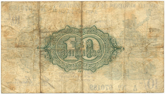 ENGLAND P.350b T20 1918 HM Treasury Bradbury 10s B36 VF30