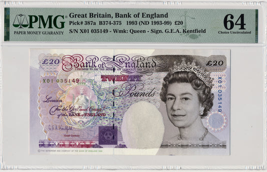 ENGLAND P.387a B374 1991-1993 Kentfield First run £20 X01 Choice UNC 64