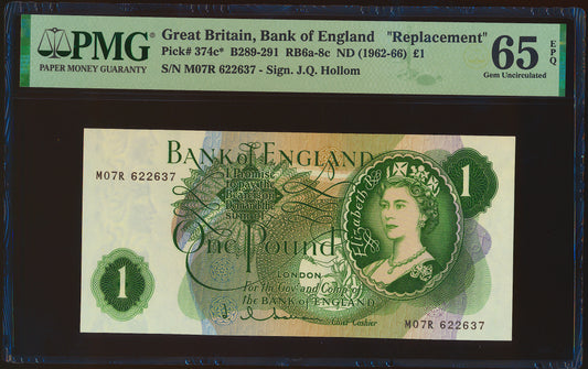 ENGLAND P.374c B291 1962-1966 Replacement Hollom £1 M07R GEM UNC 65 EPQ