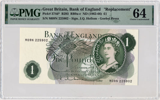 ENGLAND P.374d B293 1962-1966 Hollom Replacement £1 M09N Choice UNC 64