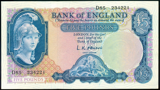 ENGLAND P.371 B277 O'Brien £5 AUNC D85