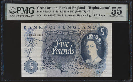 ENGLAND P.375c B325 1970-1971 Replacement Page £5 17M AUNC 55