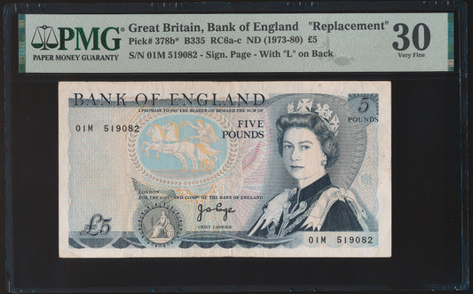 ENGLAND P.378b B335 1973-1980 First run Replacement Page £5 01M VF 30