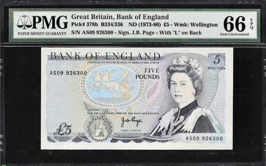 ENGLAND P.378b B336 1973-1980 Page £5 GEM UNC 66 EPQ