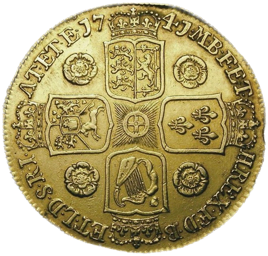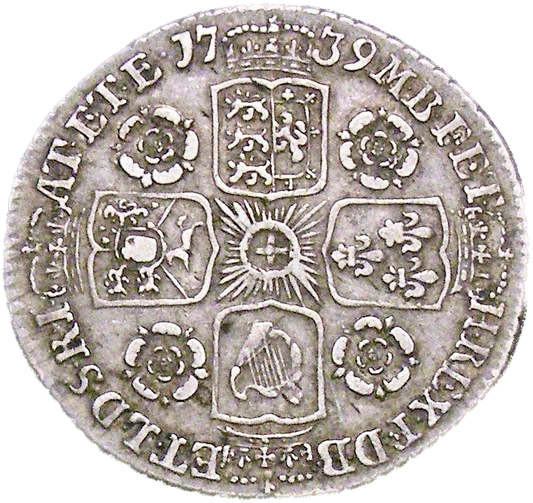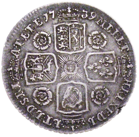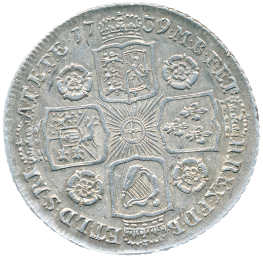 1739 Shilling Young head Roses in angles Small garter star S3701 ESC 1715 Excessively rare (R4) VF
