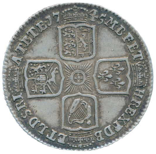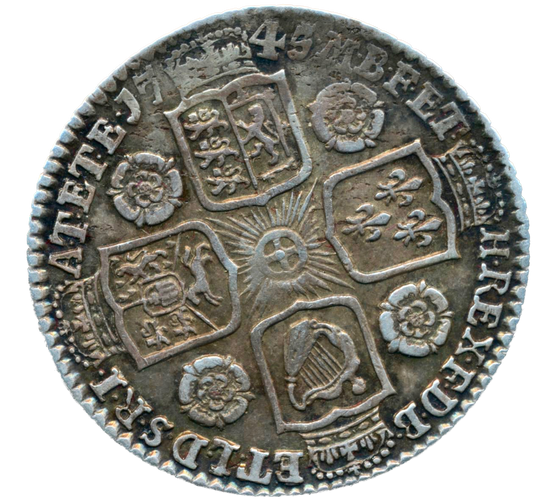 1745/34 Shilling Old head Roses in angles S3702 ESC 1723 Rare (R) GVF