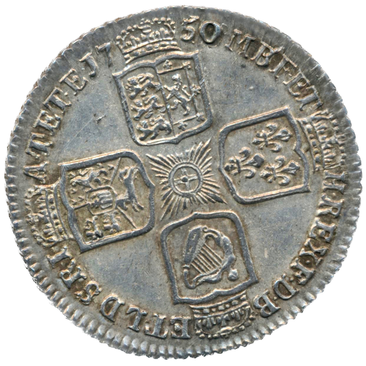 1750 Sixpence Old head Plain in angles S3711 ESC 1760 Scarce UNC