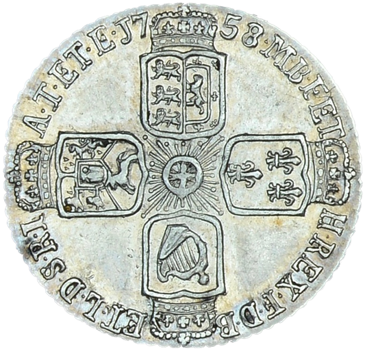 1758/7 Sixpence Old head Plain in angles S3711 ESC 1764 Very rare (R3) NEF/EF