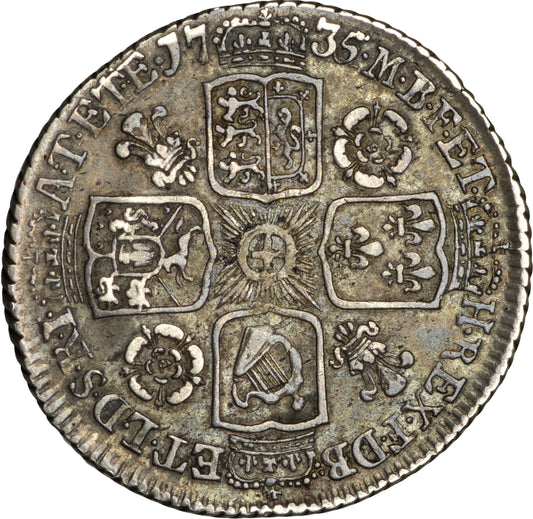 1735 Sixpence Young head Roses and plumes S3707 ESC 1745 Very rare (R2) VF