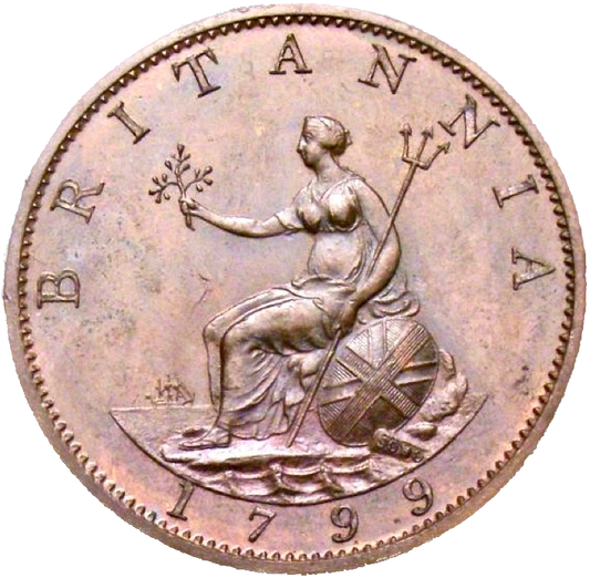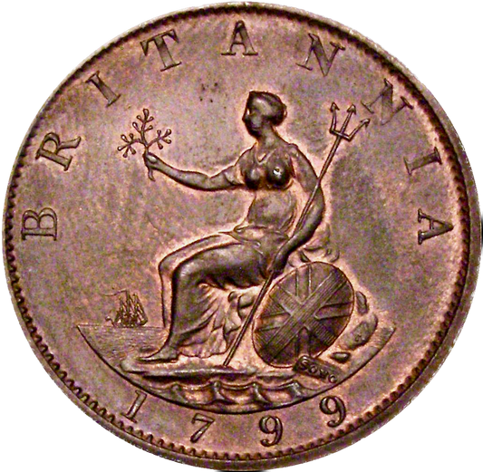 1799 Halfpenny S3774 BMC 1248 5 Gunports UNC