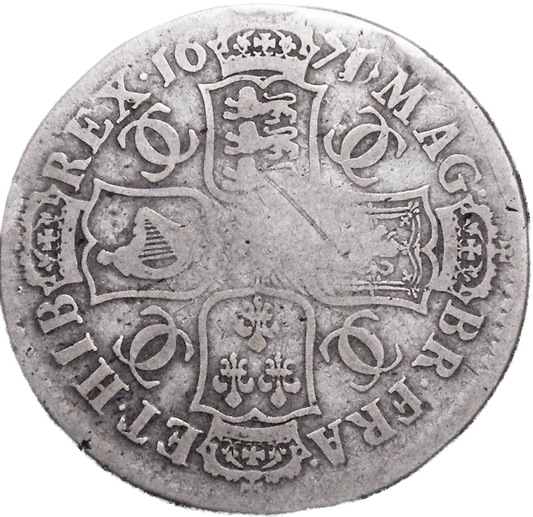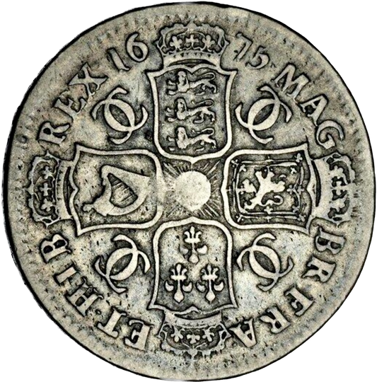 1675 Halfcrown Fourth bust Edge V. SEPTIMO S3367 Retrograde 1 ESC 470 Rare (R2) F/GF