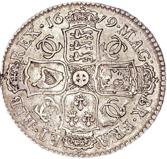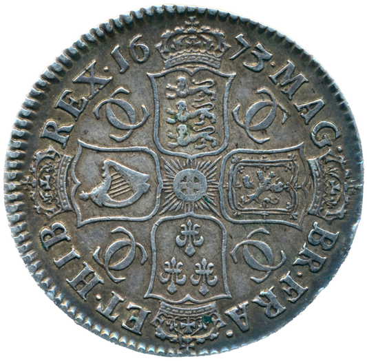 1673 Halfcrown Fourth bust Edge V. QVINTO S3367 ESC 463 Rare GVF/NEF