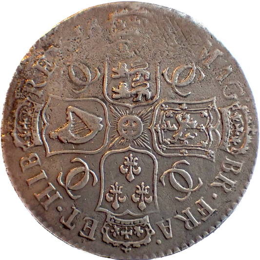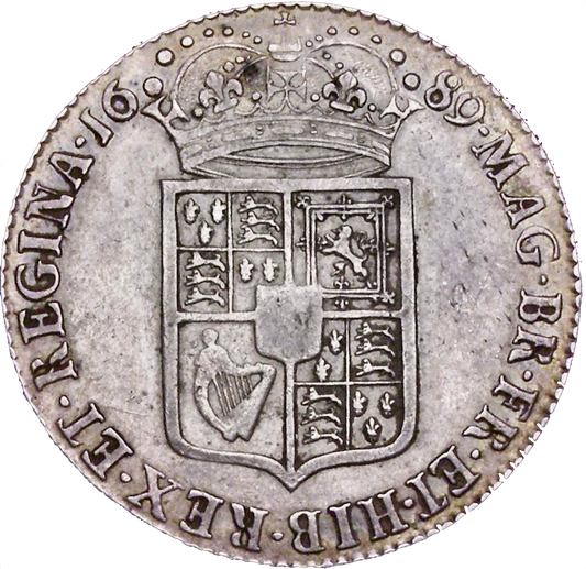 1690 Halfcrown First busts Edge SECVNDO S3435 ESC 848 GRETIA error with V over S in GVLIELMVS Extremely rare (R3) VF