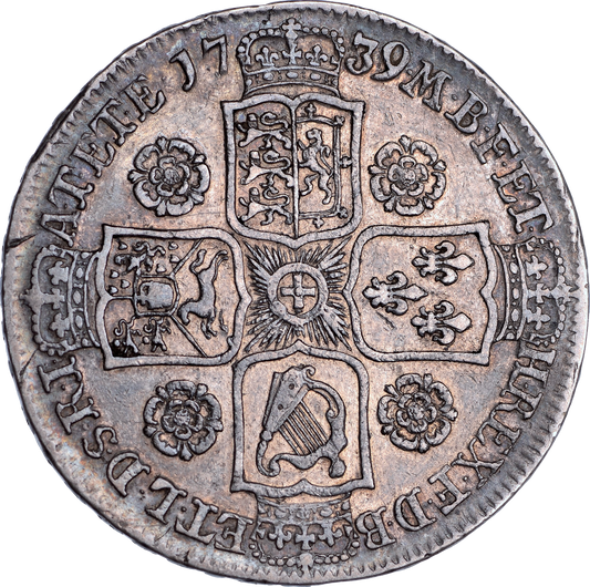 1741 Halfcrown Roses in angles Edge D. QVARTO S3693 ESC 1681 rare (R3) AVF/VF