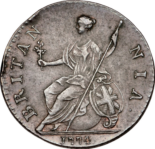 1774 Halfpenny S3774 BMC 907 Scarce AUNC