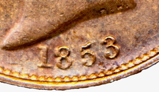 1853 Halfpenny 3 over 1 S3949 BMC 1539var GEF