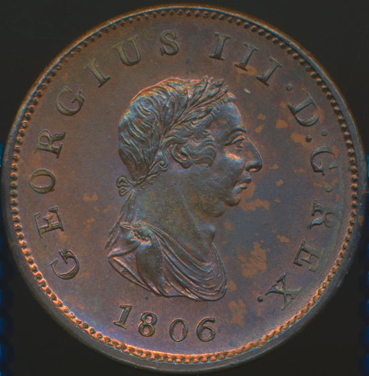 1806 Halfpenny pattern proof in bronzed copper S3781 BMC 1379 Restrike KH45 Very Scarce