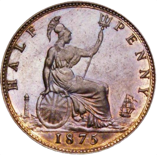 1875 Halfpenny F321 Obv 11 Rev J UNC