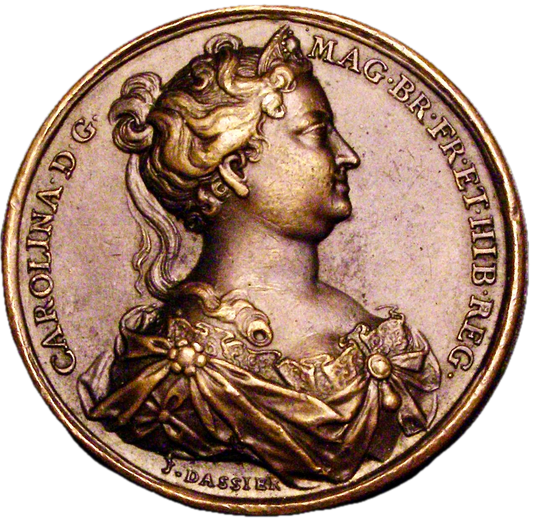 1731 Death of Caroline 40mm copper medal from dassiers Kings and Queens series