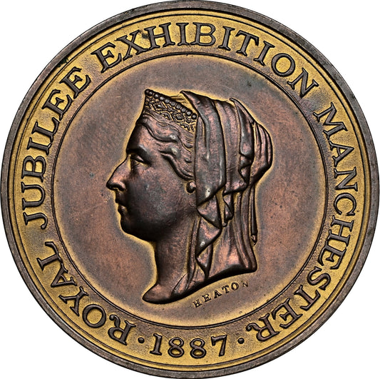 1887 Golden Jubilee BHM 3346 Manchester Exhibition 43mm bronze medal in box of issue by Heaton