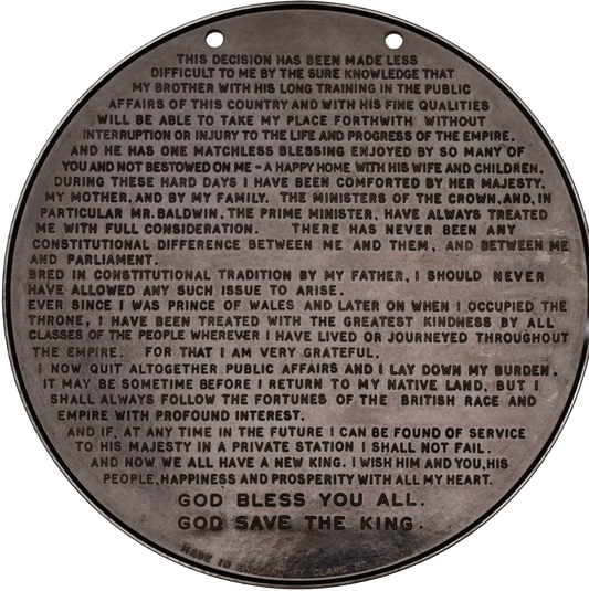 1936 Abdication speech a black bakelite medal 114mm BHM 4272