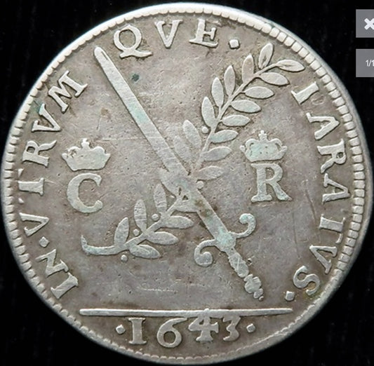1649 (c) Charles II Royalist silver badge 26mm*22mm issued in exile MI 439/6 E206 NEF