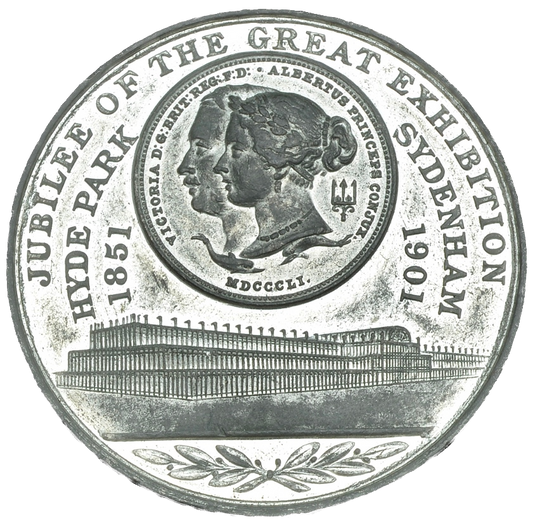 1901 Crystal Palace Exhibition 38mm white metal medal BHM 3734 E1858 EF