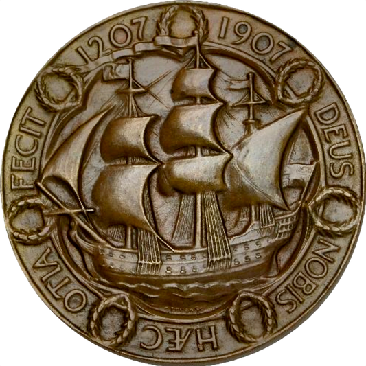 1907 Liverpool 700th anniversary 64mm bronze medal by Charles Allen BHM 3952 E1898
